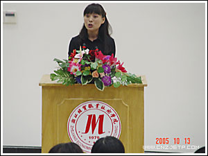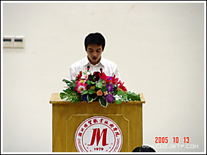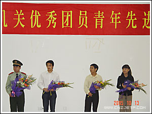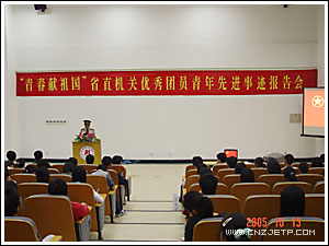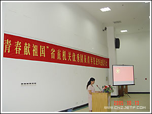 在庄严的国歌声中,先进事迹报告会拉开了帷幕。团员代表向4位报告团成员献花。省公安厅消防总队温州支队泰顺大队二期士官、浙江青年五四奖章获得者傅开其,省文化厅曲艺杂技总团杂技演员、浙江省十大优秀青年马超,省残联团委书记、2004年浙江省优秀农村指导黄树良,全国青年文明号集体——省民政厅浙江革命烈士纪念馆宣传科科长万晓青等分别作了事迹报告。