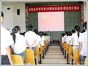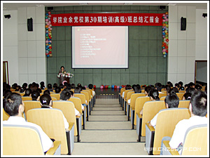 会上,党校高级班班主任裘永晓老师作了学期总结,并引领学员观看学期回顾视频短片。学员代表郑妍虹和学生党员代表蔡蔚蔚在典礼上作了发言。党委副书记潘素芳老师在会上发表讲话,她对本期党校高级班取得成绩作了充分肯定,并对学员们提出了殷切的期望和要求。潘书记还为本期党校学习中表现突出的五位优秀学员颁发了荣誉证书。各系党总支书记为158名学员颁发了结业证书。