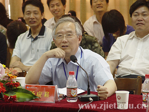 随后,评估专家组组长杨应崧教授代表专家组对研讨会进行了精彩的点评。他首先表示这次研讨会是成功的,对大家能紧扣主题、敢于参与、发挥团队合作精神,以及表现出坦诚和注重细节等优良品质给予了肯定。同时,他也指出研讨会存在两个不足之处,一是没有学生主动用英语发言,二是思辨的深度不够。此外,杨教授用“三个无限”(即隐性资源是无限的,对知识的探求是无限的,人的潜能是无限的)阐释了自己对浙商成功之因的理解,言辞间不时透露出对我们高职学生的热爱和期望。最后,杨教授强调了和谐、包容精神的重要性,他勉励大家要“继承浙商精神,努力成为新一代华商”!