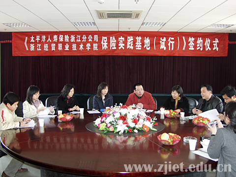 签约仪式上,公司领导与院方领导就合作的意义及前景作了发言,同时对公司、学院和学生三赢的合作前景充满憧憬。仪式结束后,在学院相关老师的陪同下,太平洋人寿浙江分公司一行人员参观考察了我院的实训基地。