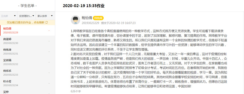 启动线上教学计划后,全体思政课教师积极行动,迅速与学生联系建立课程班级群,组织所有大一学生从2月17日起,按照新学期课表在人民数字马院“优学院”教学平台开展在线直播、微课学习、互动讨论、作业测试等教学活动。强化在线学习过程和多元考核评价意识,加强课前、课中、课后管理,注重学生学习获得感。线上教学一周以来取得预期效果:教师层面——建立马院“停课不停学”QQ群,积极交流线上教学心得,互学互促,教学秩序井然;学生层面——绝大多数学生听从任课教师的教学安排,与老师积极在线互动交流,认真完成学习任务。以“战疫,我们在一起”的在线讨论效果来看,老师们认真引导,学生们积极参与,充分展现了经贸学子满满的正能量。