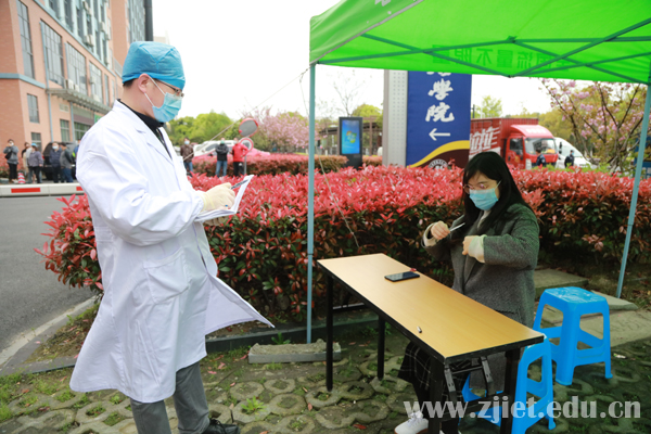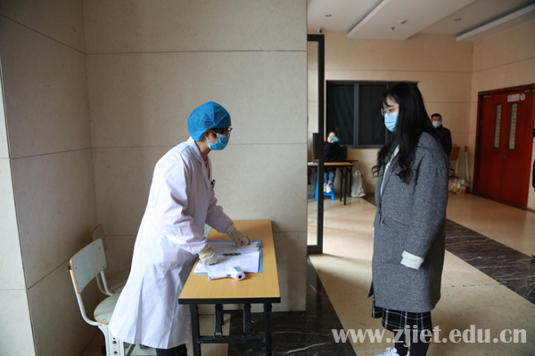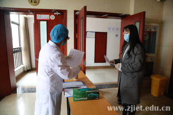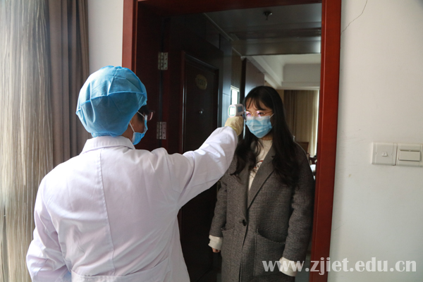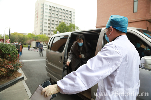 4、复测温度仍≥37.3℃,现场医护人员第一时间将学生班级、后续处置等具体情况报告学校防控办,同时通知学生处和相关系部辅导员赶到临时隔离点,通知车队赶到北门送学生至浙江省中医院下沙院区就诊。
