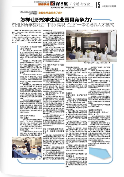 杭州市建设职业学校校长陆斌说:“随着中职学校升学率的不断提高,原先中职学校和企业的合作模式也必须要升级,如今这样三方的合作,可以指导学校更好培养企业需要的人才。”