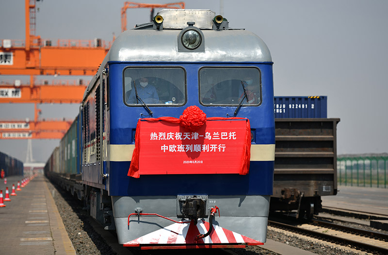 2020年5月20日,在中铁天津集装箱中心站,X9202次中欧班列准备发车。新华社记者 李然 摄