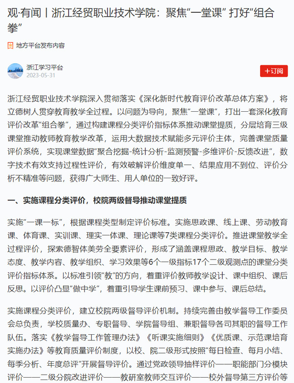 一、实施课程分类评价 校院两级督导推动课堂提质增效