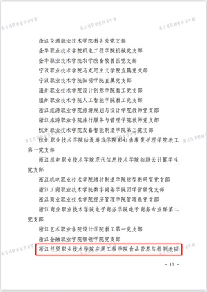 近日,浙江省教育厅公布了第二批全省高校党建工作标杆院系、样板支部培育创建单位验收通过名单,我校信息技术学院党总支、应用工程学院食品营养与检测教研室党支部顺利通过验收。