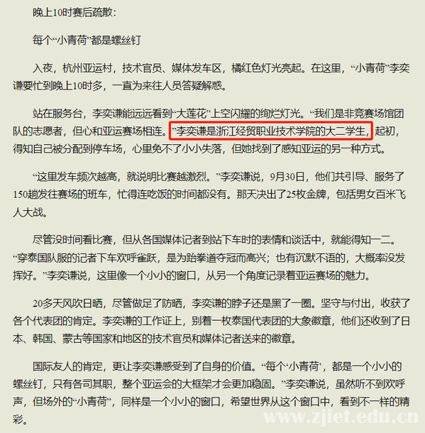 国际友人的肯定,更让李奕谦感受到了自身的价值。“每个‘小青荷’,都是一个小小的螺丝钉,只有各司其职,整个亚运会的大框架才会更加稳固。”李奕谦说,虽然听不到欢呼声,但场外的“小青荷”,同样是一个小小的窗口,希望世界从这个窗口中,看到不一样的精彩。