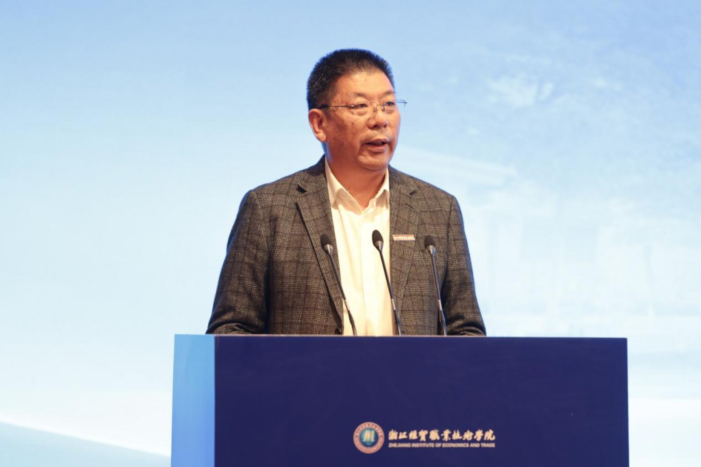 周妙荣代表钱塘区委、区政府讲话,他对发展理事会取得的成绩表示祝贺。他指出,钱塘是全省唯一一个同时拥有经开区、高新区、综保区、自贸区等多块国家级牌子的产业大平台,形成了“515”现代产业体系。近年来,钱塘区持续在深化教育科技人才一体贯通、提升全域创新效能上谋改革、求突破。他表示,钱塘区与浙江经贸学院已建立紧密的合作关系,共同推动了多个产教共同体项目,期待进一步聚焦长效机制建设,打造区校融合发展“共同体”;聚焦产业人才培养,画好校企合作共赢“同心圆”;聚焦科创能级跃升,打造环大学城创新“生态圈”,共同促进钱塘区的高质量发展。