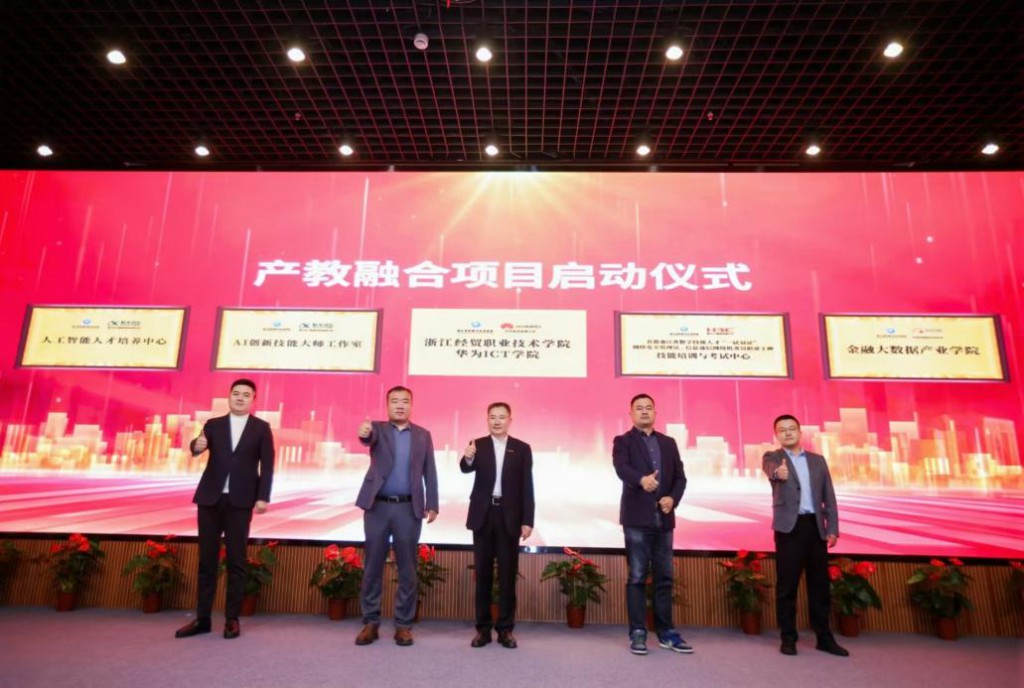 校企举行了产教融合项目启动仪式,学校与华为共建华为ICT学院,与浙江讯飞智能科技有限公司共建人工智能人才培养中心、AI创新技能大师工作室,与新华三集团共建首批浙江省数字技能人才“一试双证”技能培训与考试中心,与杭州同花顺数据开发有限公司共建金融大数据产业学院。
