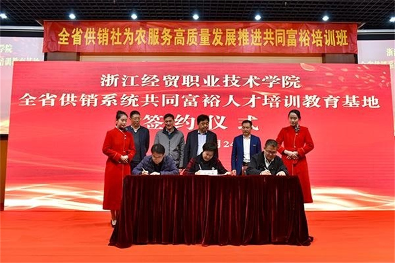 紧密围绕乡村共富产业发展需求,深度整合学校、政府、供销社、行业、企业等多方资源,以“共富学院”为核心载体,聚力构建为共富建设全面赋能的集成平台。重点打造全国数字经济与现代农业流通产教联盟、教育部县域农产品电商化协同创新中心、全省供销系统共同富裕培训教育基地等多个共富综合体,形成“人才培养—技术研发—技能培训—文化浸润—产业升级”的为农服务矩阵。以平台为枢纽跨界链接资源,打破助富关键要素流动壁垒,通过高效的信息共享和要素协同,实现“需求牵引—资源聚合—精准赋能”的闭环效果,推动高职教育和服务供给与乡村共富需求从“松散耦合”迈向“系统适配”,为乡村共富建设注入长效化、集成化的职教动能。