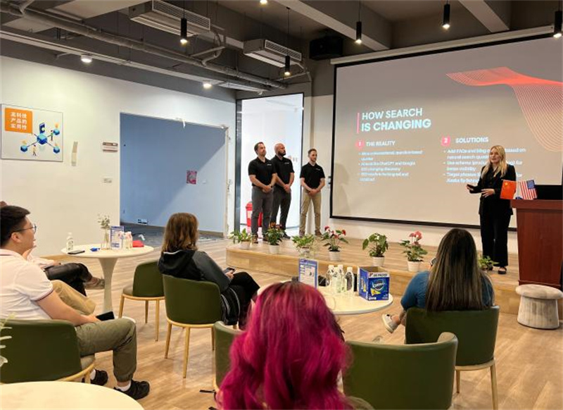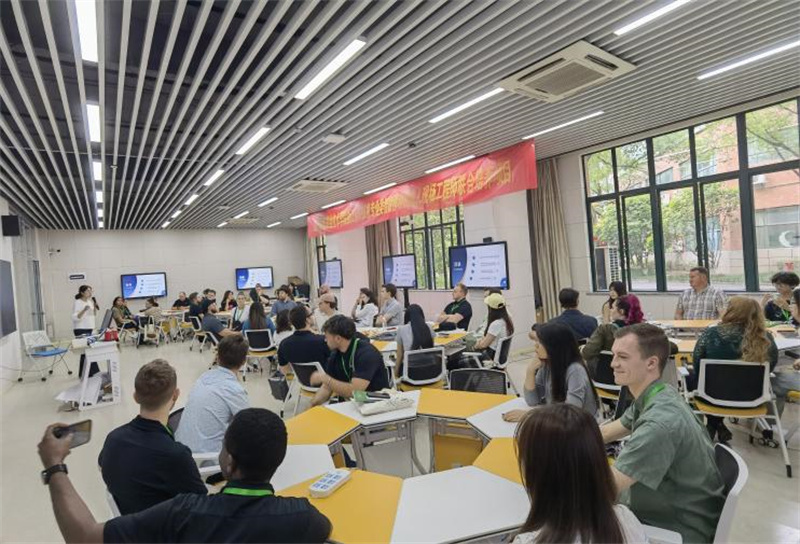 在浙经贸校园内,美国师生参观了学校数字工匠学院、电商实训基地,并参与中美学生直播实践课程学习,通过直播带货体验、中美青年专业研讨,系统感知与学习中国现代电商的运营与技术知识。在研学实践环节,美国师生们走进华为全球培训中心,沉浸式感受中国数字智能时代的发展前景;在参访富杰、力聚等专精特新企业中,结合前期调研开展了研究项目汇报,以国际视野为企业提出创新方案;在参访义乌国际商贸城中,了解跨境电商行业前沿资讯,探索数字技术赋能产业升级的中国实践,在专业互鉴中,实现与技术技能对话。