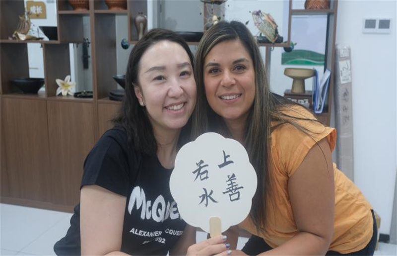 美方学生Kelly巧妙融合艺术色彩与传统水墨意境,在团扇上绘制了以“美”为主题的图案,她感叹:“中国之美藏于书法,藏于武术的招式,藏于乒乓球赛场上拼搏,这些美跨越语言,让我感受到中华文化的魅力。”