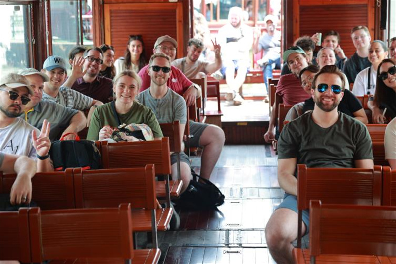 美国师生深度感知中华传统文化的魅力,执毛笔体验中国书法,领悟汉字结构之美;练习太极拳法、手持柔力球拍在一招一式中感受刚柔并济的哲学;泛舟西湖三潭印月,在山水画卷中读懂“天人合一”的东方美学;踏入南宋德寿宫遗址博物馆,透过千年宫阙触摸宋韵雅集的风骨。活动期间,正值学校承办“2025年浙江省大学生乒乓球(乙组)锦标赛”,中美青年在竞技现场为体育精神喝彩,感受国球魅力。